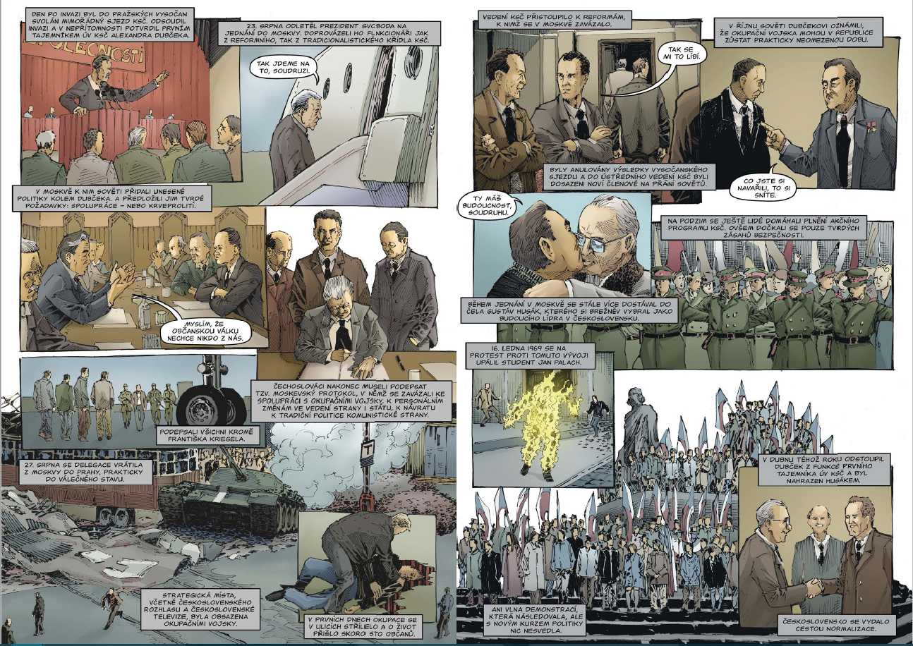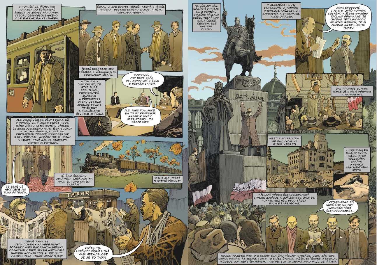 Kniha po desetiletích mapuje dějiny samostatného Československa od jeho vzniku na podzim roku 1918 do rozpadu na počátku roku 1993. Každá kapitola začíná devítistránkovým komiksovým příběhem, který dobře charakterizuje to které desetiletí a pokračuje faktografickým textem, který čtenáře uvede do širších souvislostí. Text sleduje především politické dějiny naší země.
