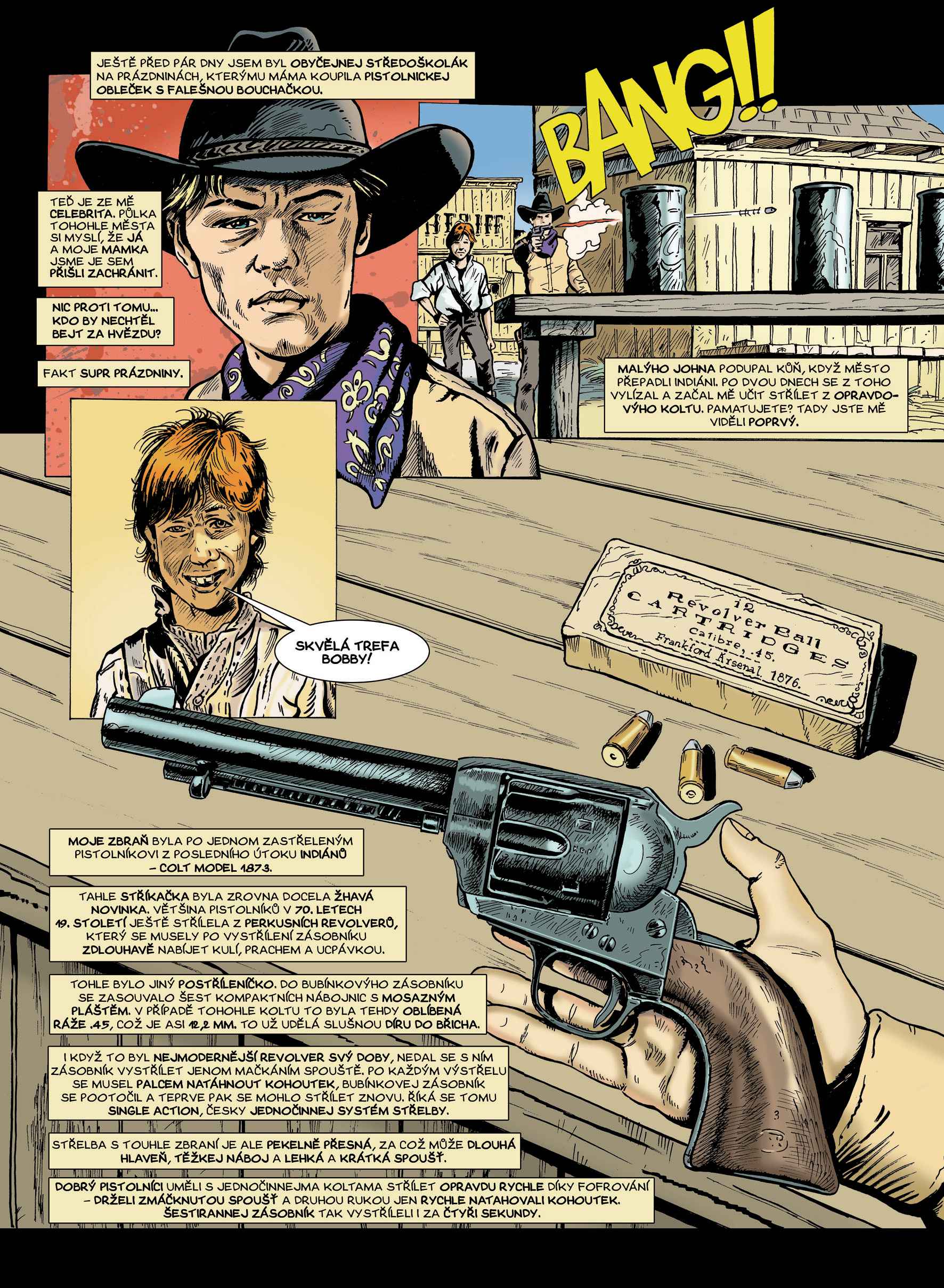 Fiktivní komiksový příběh současného českého teenagera, který se dostane na Divoký západ v druhé polovině 19. století. Takové prázdniny Robert ještě nezažil. Podaří se Bobbymu a jeho přátelům otevřít Bránu času a zachránit se z obleženého Jail City? Na cestě po USA si pořídil pistolnický obleček a vyrazil do indiánské rezervace. A náhle je to všechno realita.