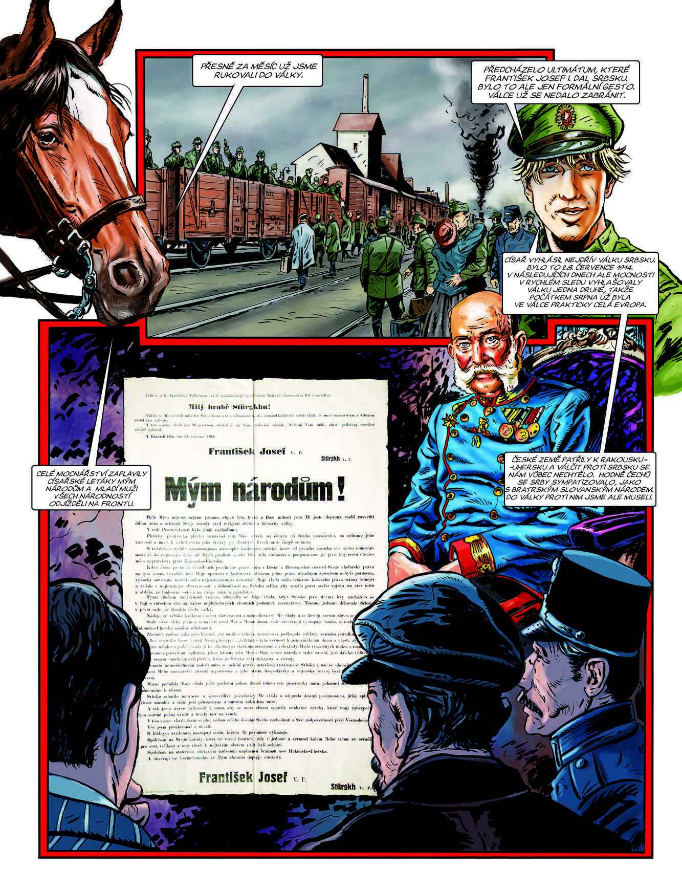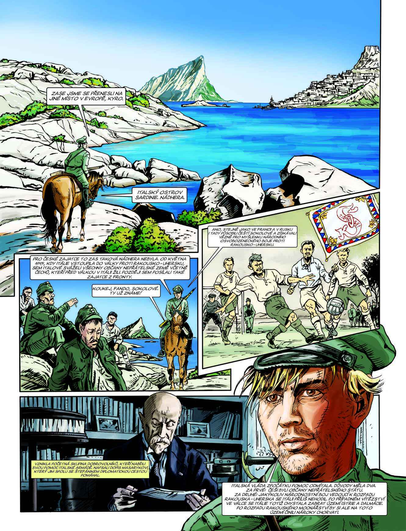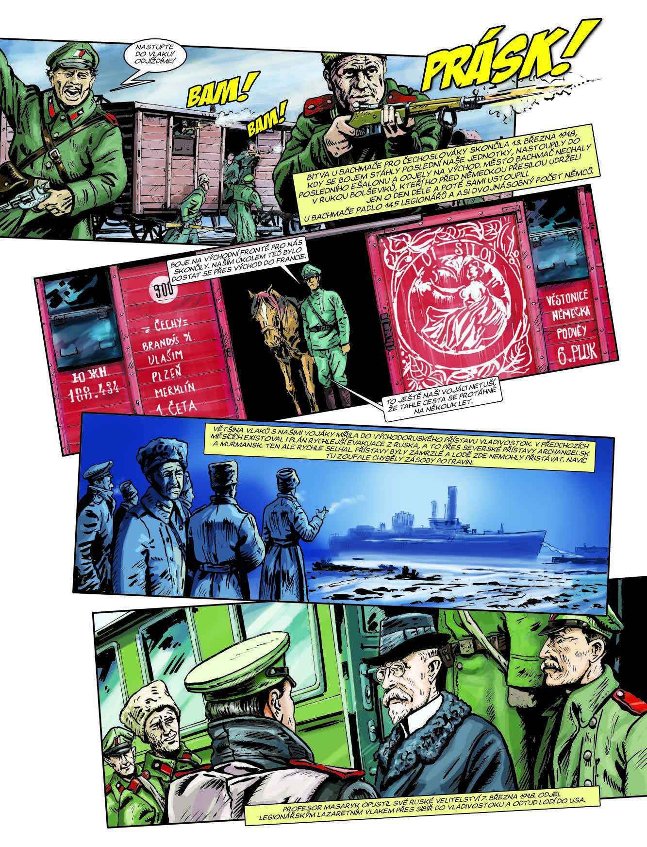 Historie československých legií za první světové války ve stostránkovém komiksu. Dva fiktivní vypravěči – mladý poručík Fanda a vojenská klisna Kyra – čtenáře zavedou na všechna bojiště, kde naši legionáři působili. Vysvětlují politické okolnosti, postoj českých branců k císařské armádě i vznik prvních dobrovolnických vojenských útvarů v zahraničních armádách.