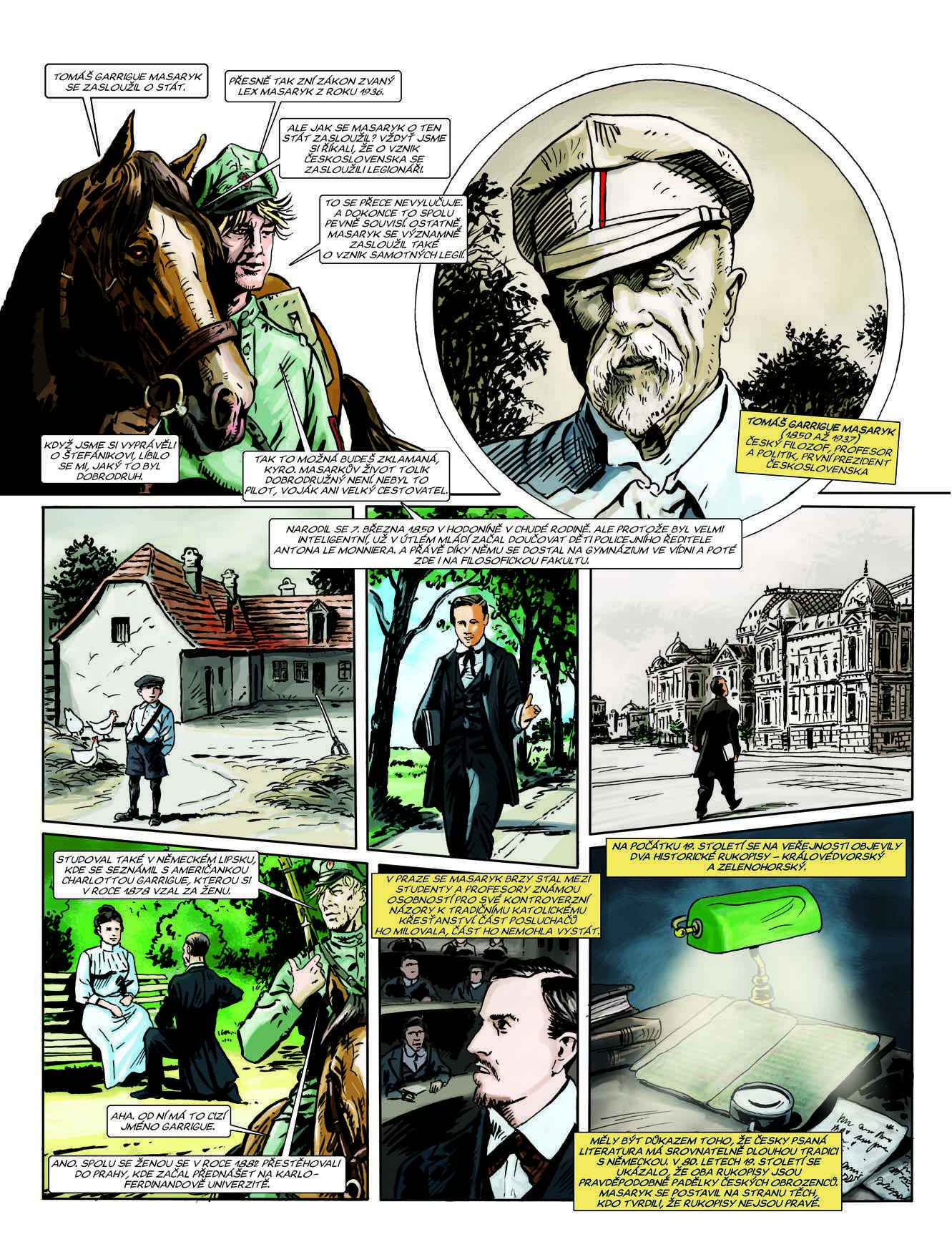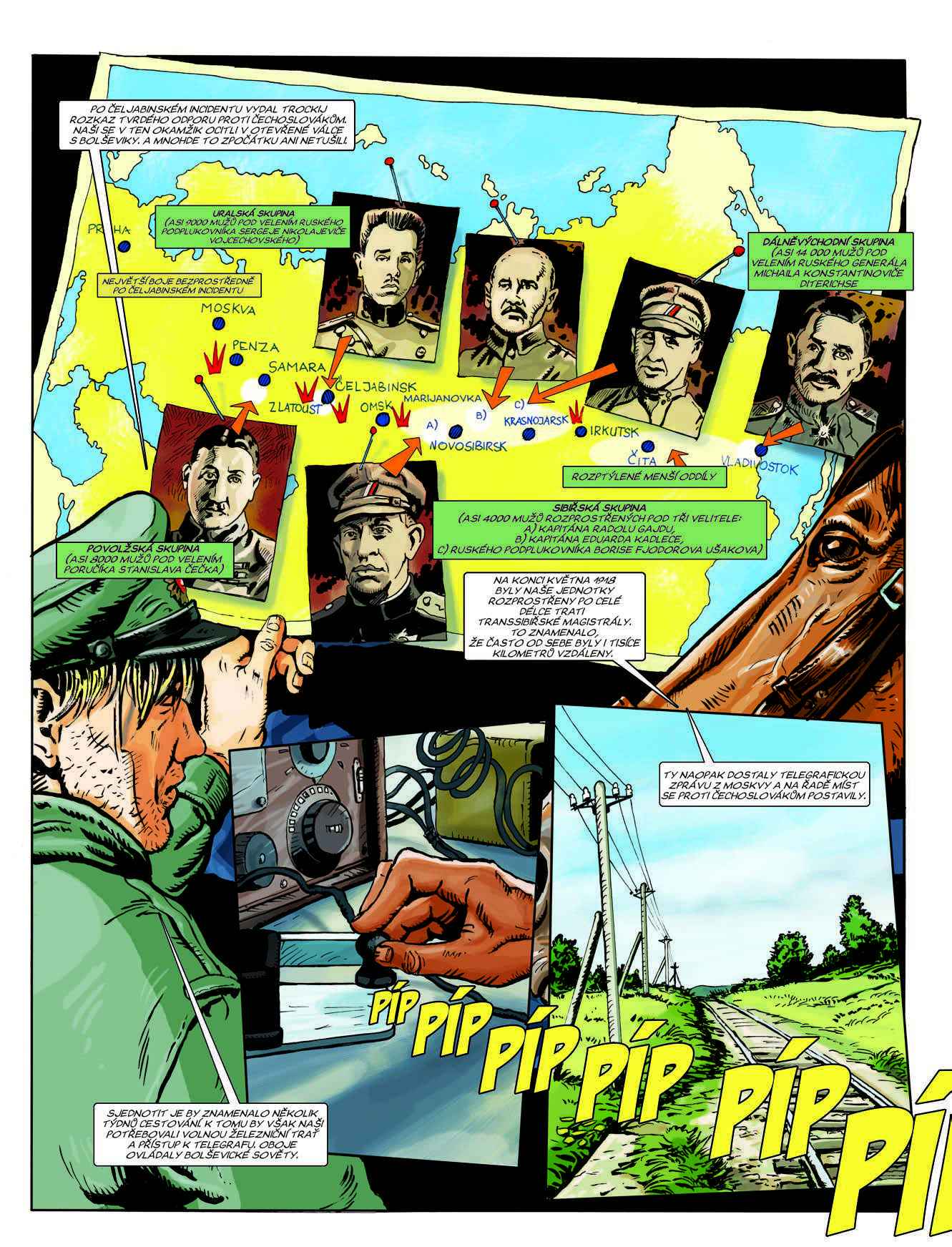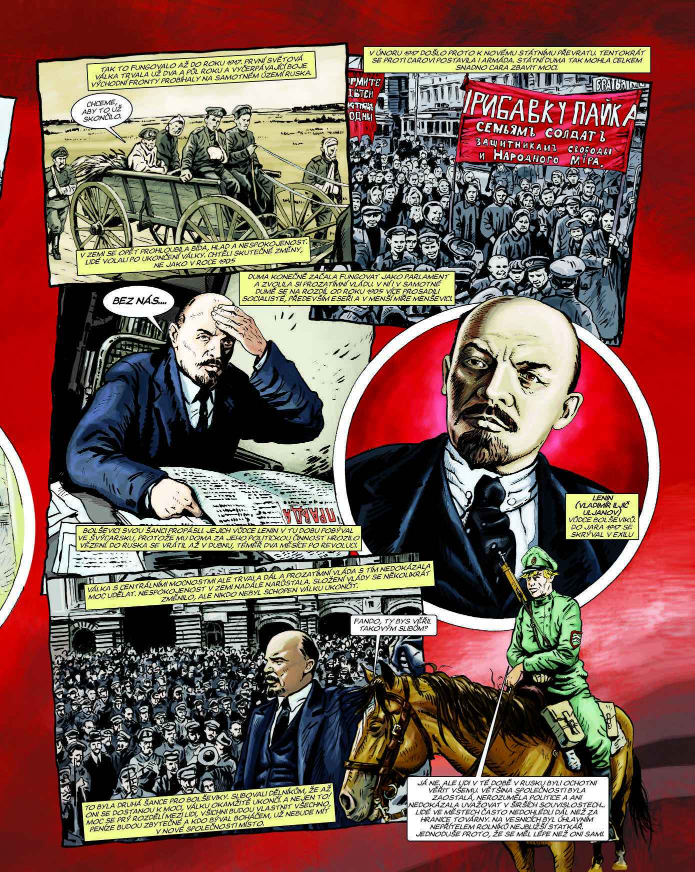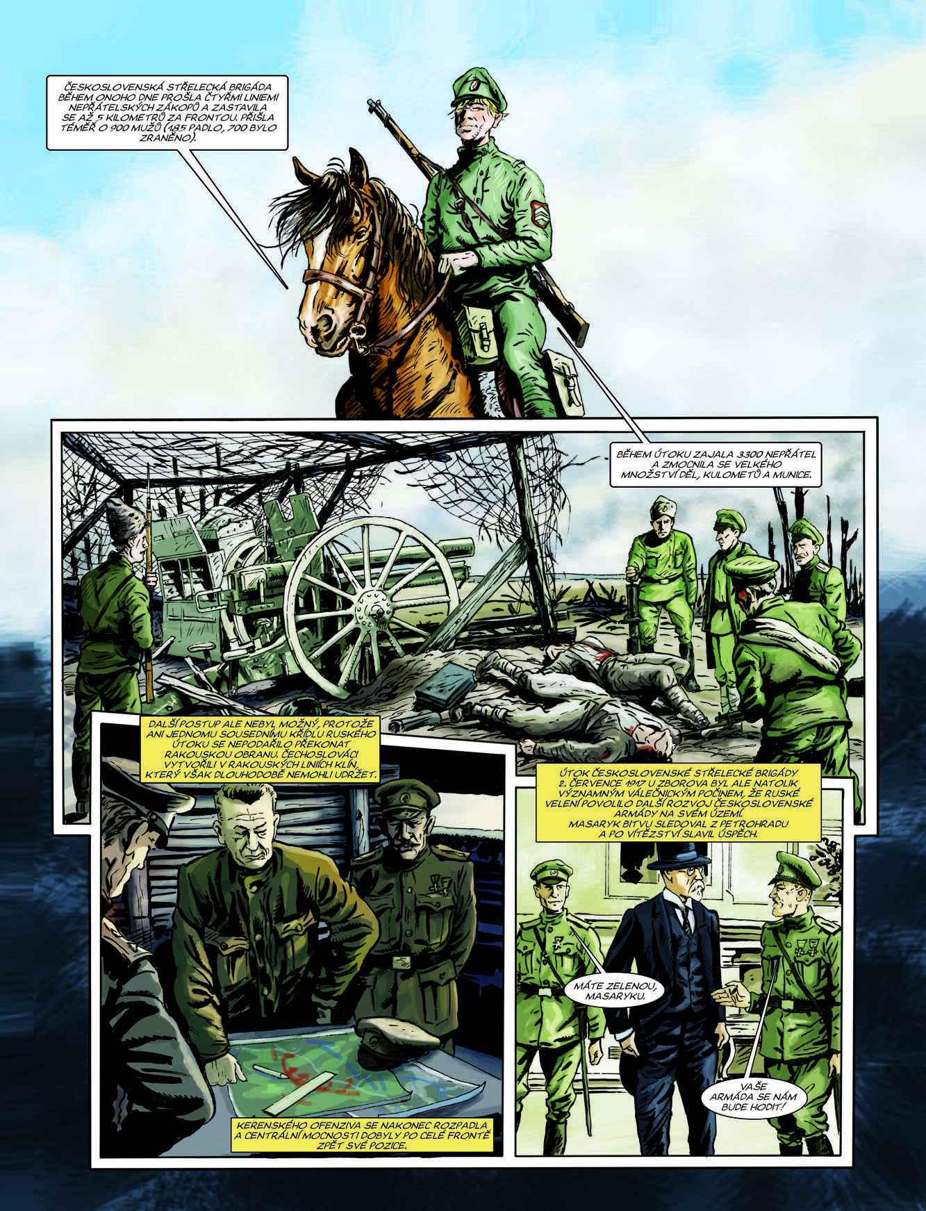 Historie československých legií za první světové války ve stostránkovém komiksu. Dva fiktivní vypravěči – mladý poručík Fanda a vojenská klisna Kyra – čtenáře zavedou na všechna bojiště, kde naši legionáři působili. Vysvětlují politické okolnosti, postoj českých branců k císařské armádě i vznik prvních dobrovolnických vojenských útvarů v zahraničních armádách.